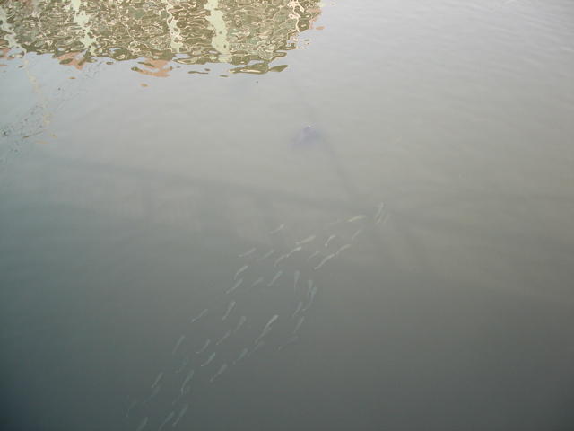 가끔 바다물고기 숭어떼가 올라오다 낚시바늘에 후려치기 당하기도 합니다.