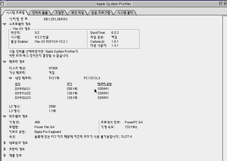 g4 733이네요 ^^ 쿽 3.3을 쓰면 최고사양으로 G4 1.25가 있습니다. 아님 듀얼 1기가나 램은 1기가 이상으로 하시고 하드는 두개를 달으셔서 하나는 시스템 하난 데이터 백업용으로 쓰시면 좋을듯