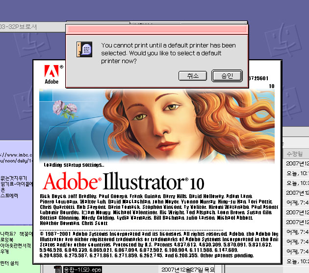 레이져 프린터를 사용하신다면 선택자에서 레이져라이터8 이나 adobe ps를 선택하고 프린터 셋팅을 다시 해주세요.