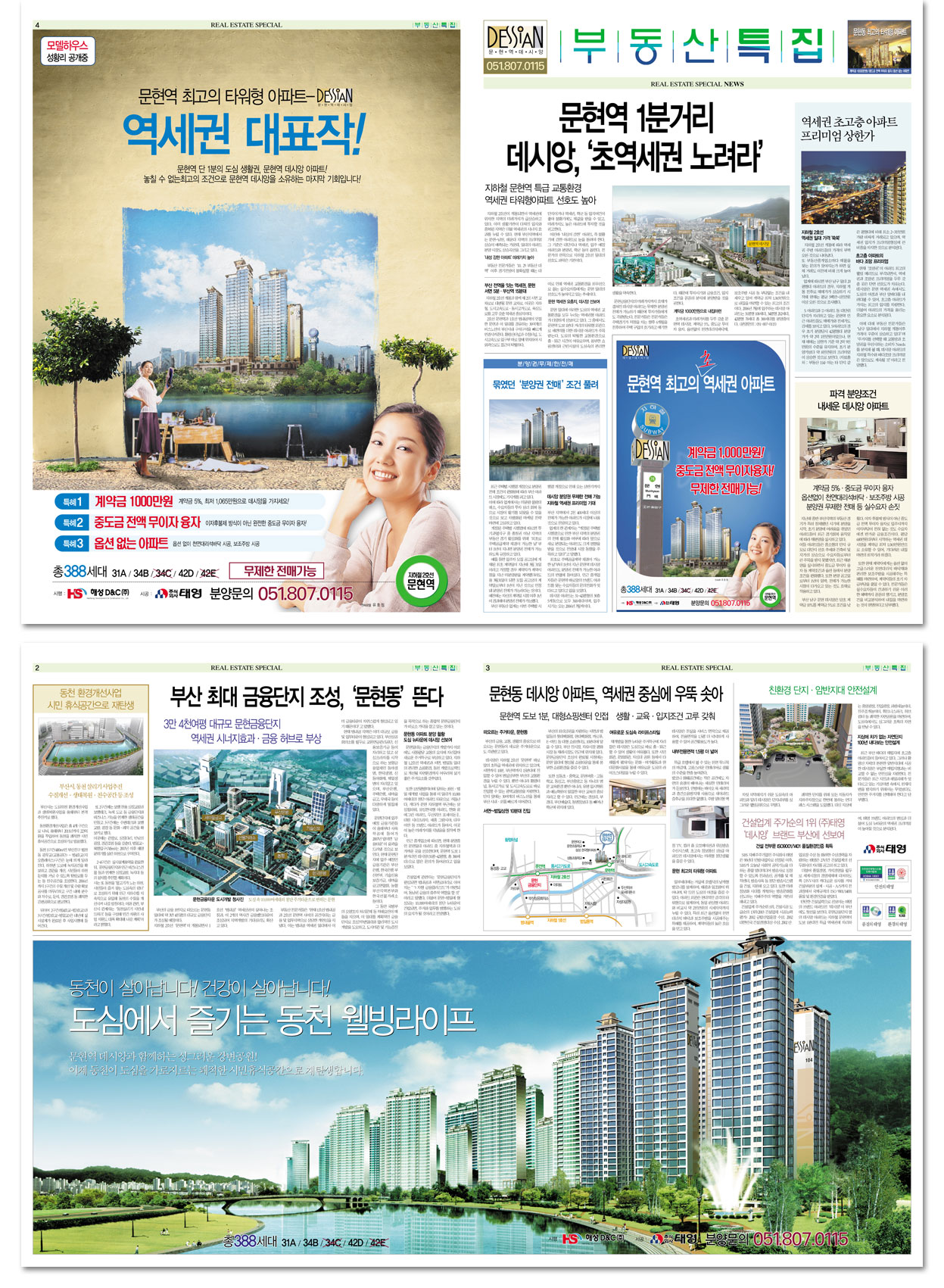 그렇하기에 정말 신문처럼 보일 수 있도록 이미지 광고 (와이드(브릿지)전면과 전면 8단, 5단, 5단 쪽광고)를 제외한 모든 기사 광고면에서의 이미지는 실사(분양에 포함된 모든 조감도와 실사)를 배제하고, 기사부분을 늘리며 기사성과 사실성에 근접한 이미지를 작은 크기로 적게 사용하시고 박스기사를 줄이면 본지의 섹션처럼 읽혀집니다. 만약에 크라이언트의 요구가 없다면, 함 해보심이 도움이 되리라 생각 됩니다. 바닦광고는 지속적으로 변하고 있습니다. 조선·동아·중앙신문의 섹션처럼 똑같은 느낌이 오지 않는다는것은 이미 섹션으로의 기능을 상실했다고 봅니다. 작업의 과정은 이미 나와있는 부동산 특집을 모방하는 것이 아닌 신문 자체의 섹션을 똑같이 모방하는 것입니다. 그래야 독자가 속을 수 있다는 겁니다.